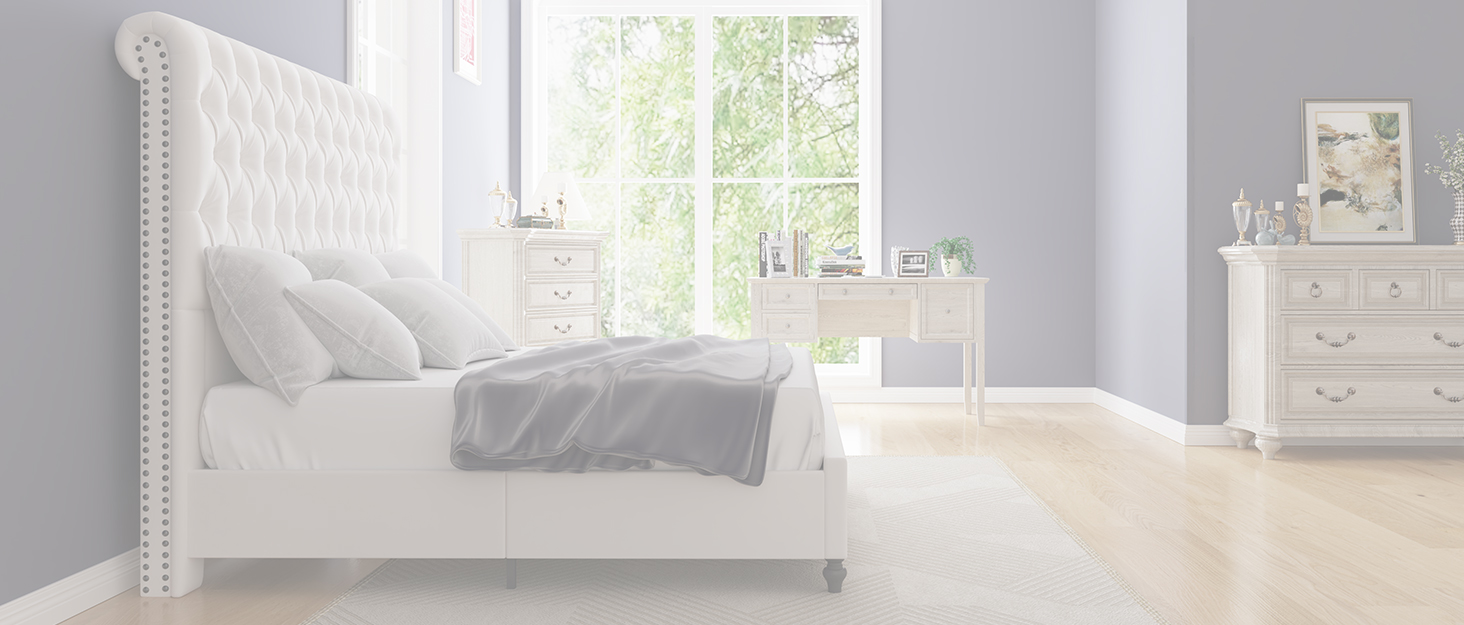 Hand-tufted velvet, classic curves, and rivet accents elevate your bedroom’s style to new heights.